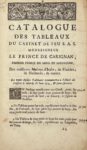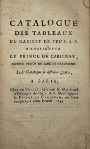 CARIGNAN (Prince de) — Catalogue des tableaux du cabinet de feu S.A.S. Monseigneur le prince de Carignan, premier prince du sang de Sardaigne.