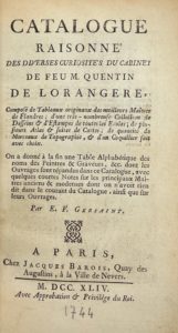 LORANGÈRE (Quentin de) — Catalogue raisonné des diverses curiosités du cabinet de feu M. Quentin de Lorangère.