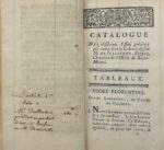 Paris, Vente, 1767. 3 parties en un volume in-12, veau marbré, triple filet doré, dos orné, tranches dorées (Reliure de l'époque).1689 lots décrits. Joli frontispice non signé.
