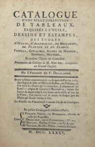 Paris, Folliot, Delalande, Brusley, Poussin, 1785. In-8, dérelié. Prix d'adjudication et quelques noms des acquéreurs manuscrits.