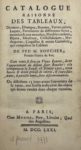 Paris, Musier père, 1791. In-12, demi-maroquin rouge avec coins, dos orné, tranches rouges (Reliure du XIXe siècle).Précieux et rare catalogue de la collection du peintre François Boucher (1703-1770), dont la vente s’est déroulée dans son appartement au vieux Louvre à partir du 18 février 1771. Il décrit 1865 œuvres et objets d'art.