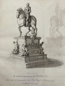 Trois planches dépliantes représentent l'ancienne statue équestre d'Henri IV, abattue sous la Révolution, la nouvelle statue inaugurée le 25 août 1818, œuvre du sculpteur François-Frédéric Lemot, et les appareils utilisés pour son transport et son élévation.