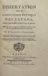 BALLEXSERD (Jacques) — Dissertation sur l'éducation physique des enfants, depuis leur naissance jusqu'à l'âge de puberté.