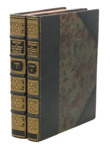 Bruxelles, Jean  Léonard, 1728. 5 parties en 2 volumes in-4, demi-maroquin vert foncé avec coins, dos orné, tranches rouges (René Kieffer).Seconde édition, la meilleure et la plus complète de cet ouvrage estimé sur les voies romaines et la circulation dans l'empire, publié originellement en 1622.