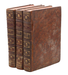 Paris, Guillyn ; Compiègne, Louis Bertrand, 1764. 3 volumes in-4, veau marbré, dos orné, tranches rouges (Reliure de l'époque).Édition originale de cet « ouvrage précieux, justement estimé et dont la préparation dura plus de quinze ans. Les sources sont indiquées » (Saffroy). Il contient cinq planches dépliantes, dont une carte du duché de Valois et deux vues des châteaux de Béthisy et de Pierrefonds gravées en taille-douce.