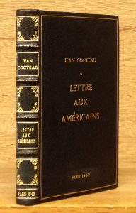 Lettre aux Américains. P., Grasset, 1949, in-12, plein chagrin noir, dos orné à 4 nerfs perlés, auteur, titre et millésime dorés au dos et sur le plat supér., filet d'encadrement doré sur les plats, tête noire, dentelle intér. dorée, couv. cons., une quarantaine de f. blancs reliés in fine. Edit. orig. (mention fictive de 2e édition).