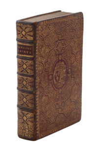 Paris, Veuve Mazières & Garnier, 1728. In-8, maroquin rouge, décor à la fanfare de compartiments de filets enfermant des fleurons filigranés, armoiries au centre, dos orné, dentelle intérieure, doublure et gardes de papier d'Augsbourg, tranches dorées (Reliure de l'époque).Beau spécimen de reliure à la fanfare de type tardif aux armes de la reine Marie Leszczynska.