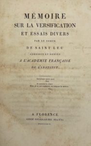 [BONAPARTE (Louis)] — Mémoire sur la versification et essais divers par le comte de Saint Leu, adressés et dédiés à l'Académie française de l'Institut.
