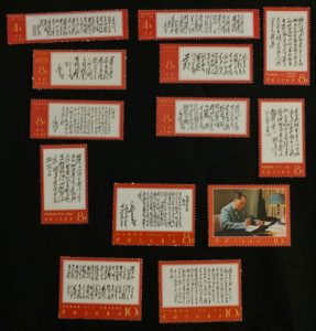CHINE 1967 : Poèmes de Mao, Mi 995/1002** + 1004/1008**, MNH, légers points de décalque.