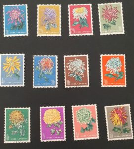 CHINE 1961 : timbres Chrysanthèmes, Mi 577/582 + 583/588, neufs, qualités diverses dont …