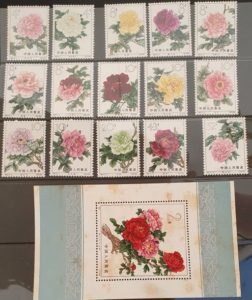 CHINE 1964 : Série Pivoine, Mi 795/809 + Bloc 9, neufs, qualités très diverses dont très …