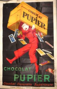 Jean D’YLEN (1886-1938) Chocolats Pupier,1927 Affiche couleur. Imp. Vercasson, Paris Dimensions : 197 x 128 cm Plis, déchirures, manques.