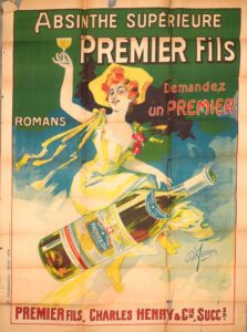 Louis Adolphe D'AUVERGNE (1850-?) Absinthe supérieure Premier Fils,c.1920 Affiche couleur. Imp. Tourangelle. Déchirures et manques. Dimensions : 149 x 109 cm.