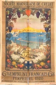 Lot de 4 affiches anciennes sur le thème du Commerce et de la Banque, 1925 Par SEM, SEIGNAC, CASTRO, ALO. Affiches couleurs, dimensions environ : 118 x 80 cm. Divers état, plis, déchirures.