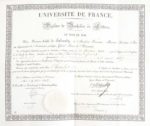 DOCUMENTS DU XIXe Ensemble de 7 documents imprimés avec mentions manuscrites : - Trois passes-ports du 1er Empire, accordés en septembre 1808 par Alexandre de Fauris de Saint-Vincens maire d’Aix en Provence donnant laissez-passer à Henry Joseph Du Poet émigré amnistié. -Quatre diplômes in-folio sur parchemin : Bachelier ès Lettres Paris 1845, Licencié en Droit Paris 1845, Bachelier en Droit Paris 1847, Licencié en Droit Paris 1889.
