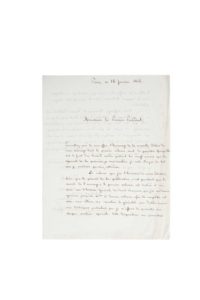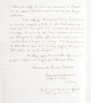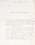Désiré DALLOZ Jurisconsulte, homme politique, créateur du DALLOZ (1795-1869) Rare lettre autographe adressée au Premier Président de la Cour de cassation Joseph Marie Portalis, signée : P. Dalloz, 2 pages in-4 à l’encre noire sur papier à ses initiales, Paris 26 janvier 1846. Permettez-moi de vous offrir l’hommage de la nouvelle édition de mon ouvrage dont le premier volume vient de paraitre. Quoiqu’elle soit le fruit d’un travail assidu pendant les vingt années qui la séparent de la première, je sens combien je reste éloigné du but que je voudrais atteindre. Le volume que j’ai l’honneur de vous adresse, bien que le premier de la publication, n’est pourtant que le second de l’ouvrage ; le premier volume est destiné à un essai sur l’histoire générale du droit Français, que j’ai cru devoir ajourner jusqu’au 40ème et dernier volume, afin de compléter cet essai, sans altérer son caractère de généralité, par d’utiles renvois aux historiens particuliers que je m’efforce de présenter sur chaque matière spéciale. Cette disposition me permettra d’ailleurs de rectifier les erreurs qui auront pu m’échapper sous le rapport d’ailleurs de rectifier les erreurs qui auront pu m’échapper sou le rapport historique, dans le cours de cette longue publication. Votre suffrage, Monsieur le Premier Président, est un de ceux auxquels j’attache le plus haut prix, et je ne crains pas de dire qu’il n’en est aucun que j’ambitionne davantage. Il serait la plus douce récompense de travaux qui témoignent de quelque zèle pour la science, et qui ont demandé tout-à la fois du courage et de la persévérance. La bienveillance que vous m’avez toujours témoignée, me fait espérer un accueil indulgent. […]