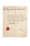 [MONACO] HONORE III Prince de Monaco (1720-1795) Pièce manuscrite en italien signée Onorato donnée à Carnolese le 24 aout 1787. Décret d’Honoré III mandant au Gouverneur et Maire de Menton de procéder à la répartition des eaux du territoire de Monti. Double feuillet in-4 composé au feuillet I d’une première page à en-tête ‘Il Principe di Monaco’ écrite et contresignée par son secrétaire avec cachet de cire rouge, suivie pages 3 et 4 du feuillet II d’une lettre de doléances adressée à son ‘Altezza Serenissima’ à propos des disputes entre les habitants engendrées par ce partage des eaux.