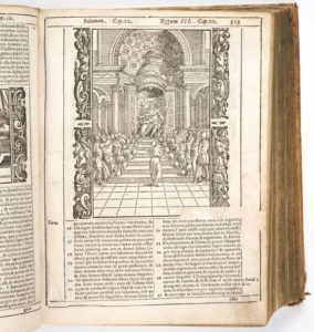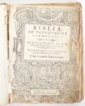 Biblioa Ad Vetvstissima Exemplaria In Qvibvs, Praeter Ea Qvae… Cul Licentia Superiorum, 1599 Venise chez Damianum Zenarum In 12, reliure vélin, 1 page de titre gravée, 1126 pp. Nombreuses gravures in texte. Dimensions : 20 x 16 cm.