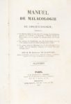 Manuel de Malacologie et de Conchyliologie, H. M. de Blainville, Édité par Levrault, Paris, Strasbourg, 1827 1 vol. 109 gravures. Reliure cartonnée, titre imprimé au dos et sur le premier plat.
