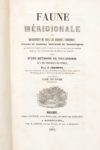 FAUNE MÉRIDIONALE ou DESCRIPTION de tous les ANIMAUX VERTÉBRÉS, VIVANS et FOSSILES, SAUVAGES ou DOMESTIQUES, par Jean CRESPON, à Nîmes 1844 2 vol. in-8, illustrés de 74 planches lithographiées dont 1 planche dépliante. Demi-reliure cuir fauve, pièce de titre bordeaux et tomaison.