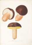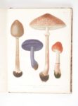 [Botanique] ROQUES Joseph Histoire des champignons comestibles et vénéneux ornée de figures coloriées représentant les principales espèces dans leurs dimensions naturelles ; où l'on expose leurs caractères distinctifs, leurs propriétés alimentaires et économiques, leurs effets nuisibles et les moyens de s'en garantir ou d'y remédier. Ouvrage utile aux amateurs de champignons, aux médecins, aux naturalistes, aux propriétaires ruraux, aux maires des villes et des campagnes. Paris. Hocquart aîné 1832. Édition originale complète des 24 planches en couleurs de champignons. Précieux exemplaire de Jules Bonhomme (Ex Libris manuscrit à la page de titre ainsi qu’à la page de garde), zoologiste et botaniste français du XIXe. Ses recherches portaient notamment sur les algues. 24 planches en couleurs. In-8 demi-basane brune, pièce de titre en maroquin rouge, reliure d’époque usagée.