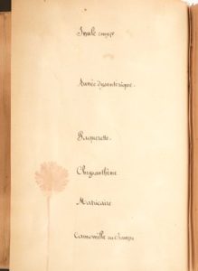Herbier de Bibliothèque, début XXe Trois volumes, in-folio reliure toilée, pièces de titre en maroquin vert sur le premier plat et au dos. Environ 150 pages de fleurs séchées avec leurs légendes manuscrites à l’encre.