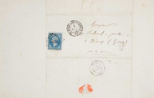 Frédéric MISTRAL (1830-1914) Lettre autographe signée adressée à Reboul, Maillane 4 oct.1858, 1 page in-8 sur feuillet double, adresse timbrée Monsieur Reboul Poète à Nîmes au verso. Il vient seulement de recevoir sa lettre lui annonçant sa visite pour le lendemain […] Venez mon illustre poète, quand il vous plaira et surtout au plutôt ; venez avec monsieur de Fréne et monsieur l’abbé Barnouin : ma maison sera trop petite pour contenir mon bonheur. Je vous serais pourtant bien reconnaissant si vous pouviez de nouveau me fixer le jour, tout autre jour que lundi prochain ; Vous me trouverez à la station de Graveson où nous prendrons l’omnibus jusqu’à mi-chemin […].
