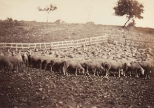 C. FAMIN 3 Etudes d’après nature, c.1870 Paysanne sur un âne, Scène de labours, Troupeau de moutons. Tirages albuminés montés sur cartons verts, tampon sec du photographe sur les images en bas à gauche. images : 11 x 16,2 cm ,11,5 x 16,5 cm et 12 x 17 cm ; montages : 26,5x35cm