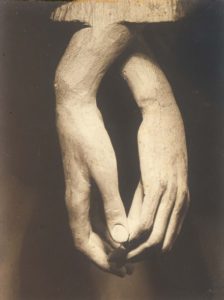 Albert RUDOMINE (1892-1975) “La Cathédrale”, sculpture d’Auguste Rodin, vers 1938 Tirage argentique d’époque sur papier Agfa-Portriga-Rapid, tampon humide au verso “Rudomine Paris”. Dimensions : 23,5 x 17,5 cm Traces de bandes de colle dans la partie supérieure et inférieure.