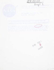 NASA 2 portraits de l’Astronaute Virgil GRISSOM à Cape Kennedy, 1964-1965 Tirages argentiques d’époque, légendés, logo de la NASA au verso. Dimensions : 25,4 x 20,5 cm.
