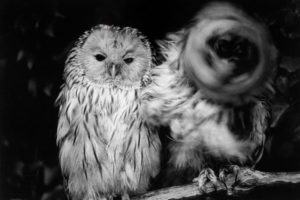 Francis APESTEGUY (1952-2022) “Les hiboux”, 1996 Tirage argentique d’époque, titré, signé, numéroté (1/30) et crédit du photographe à la main au verso. Dimensions : 33 x 48,3 cm (feuille) ; 30,5 x 45 cm (sujet).