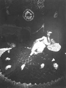 [CURIOSA] Irina IONESCO - Att. (1930-2022) Poses langoureuses, vers 1980 2 tirages argentiques d’époque. - Victoria nue sur le fauteuil : Dimensions : 39,5 x 29,7 cm (feuille) ; 39,5 x 27,5 cm (image). - Gitane alanguie : Annotation au crayon “Irina IONESCO, vintage silver print 1970” au verso. Dimensions : 40 x 30,5 cm.