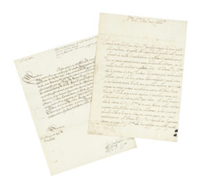 Manoscritti a inchiostro bruno. 5 pagine scritte in totale. Testi in italiano e francese. Sigilli in carta conservati. Dimensioni varie. (4)Cristina di Lorena fu moglie di Ferdinando I de Medici e granduchessa consorte di Toscana. Dopo la morte prematura del figlio Cosimo II, Cristina fu coreggente del Granducato, insieme alla nuora Maria Maddalena d'Austria, durante gli anni della minor età del nipote Ferdinando II (dal 1621 al 1628). La lettera del 5 giugno 1600 è inviata a Giovanni Francesco Biandrate di S. Giorgio Aldobrandini; Cristina di Lorena si congratula per la nomina da monsignor Jacobacci alla carica di Nunzio Apostolico a Firenze: La persona di Mons. Jacobacci ha portato qua tanta soddisfazione e gusto, che non potevan esser maggiori; poiché oltre al suo valoroso merito et alla sua ingenua natura, egli è stato sempre nei tempi passati accettissimo amico del Gran Duca mio Sig.re. La lettera del 11 maggio 1624, in francese, è inviata al fratello Enrico II duca di Lorena a proposito dell'assunzione in qualità di paggio del Granduca di Luigi di Stainville. Le lettere s.a. e del 1629 sono rispettivamente inviate a Giulio Barbolani di Montauto (esprime le condoglianze per la morte della moglie) e al nipote Duca di Lorena ringraziandolo per la gioia espressa per la salute migliorata di Cosimo II e del cardinale Carlo, altro figlio di Cristina di Lorena.