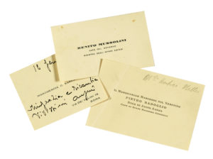 Mussolini Benito, 3 biglietti da visita. Non datati.