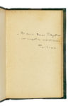 Manoscritti a inchiostro bruno. Libro con legatura in mezzo marocchino verde con punte e piatti decorati. Titolo in oro al dorso. Il disegno, non datato, è firmato Tri. Cornice disegno: 200x210 mm. Disegno: 95x100 mm. (2)Dedica: All'amico Bruno D'Agostini / con simpatia cordialissima / Trilussa. Il volume è pubblicato nella collana Classici dell'umorismo.