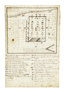 Manoscritto a inchiostro nero. 4 carte, scritte 6 pagine (con disegno). Dimensioni: 295x195 mm. (1)Curioso documento relativo all'attentato contro il Re del Portogallo avvenuto il 4 settembre 1758. Il Re venne ferito dal duca di Averio, che verrà condannato, squartato e bruciato nella piazza di Belen a Lisbona. Il testo, in lingua spagnola, riporta le informazioni sulla vicenda e anche lo schizzo del palco dell'esecuzione al quale si accedeva attraverso 5 gradini: sopra di esso le ruote dell'esposizione dei corpi dei condannati (con i loro nomi), lo schieramento della fanteria, degli ufficiali di giustizia, della cavalleria ecc.