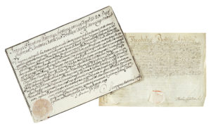 Manoscritti a inchiostro bruno su pergamena (1 su carta). Testi in latino. Sigilli pontifici plumbei e lignei pendenti e lacci originali in corda conservati (2 mancanze nei sigilli). 1 sigillo in carta (sul documento cartaceo). Sul dritto di due sigilli, in rilievo: Paulus Papa III e Clemens Papa X. Alcuni difetti, ma in generale buone condizioni. Dimensioni varie. (6)Raccolta di 6 documenti che contengono tra l'altro una bolla di Clemente X relativa alla cappella di S. Jacopo a Carmignano (vicino a Prato) di padronato dei conti Strozzi e Cantucci; una bolla di Paolo II in favore di un esponente della famiglia Cantucci. Il papa minaccia la scomunica a chiunque occulti i beni dell'eredità; una bolla di Camillo Borghese (futuro papa Paolo V) relativa alla pieve di una chiesa di Prato ecc.