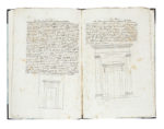 Manoscritto cartaceo a inchiostro bruno. Pagine 30 scritte. Testo corredato di 22 disegni architettonici a china e matita. Alcune fioriture, ma in buono stato. Legatura moderna in mezza pelle con angoli. Dimensioni 240 x 360 mm. (1)Il manoscritto, suddiviso in diciassette capitoli, si rifà agli studi architettonici di Vitruvio, dell'Alberti, di Palladio, del Vignola ecc. Presenta numerosi modelli di portali sullo stile dell'antica Grecia, in particolare dorico e ionico. I disegni architettonici, molto curati, evidenziano, insieme ai dettagli tecnici, i rapporti proporzionali di aperture, colonne, architravi, fregi ecc. (utilizzando cerchi e semicerchi di riferimento).