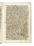 Manoscritto a inchiostro bruno. Carte [1], LXXX numerate da antica mano. Testo in italiano, scrittura corsiva. Correzioni e cancellature nel testo. I finali dei capitoli realizzati in forma di colophon tipografico. Specchio di scrittura: 195x130 mm. 38 linee per pagina. Al frontespizio, al piede, timbro Strozzi. Buono stato di conservazione con alcuni difetti: gora d'acqua alla carta del frontespizio e ad alcune carte successive (ma con testo bel leggibile), mancanza di carta al margine inferiore della c. 79, alcune bruniture dell'inchiostro. Conservata una scheda di libraio. Legatura in vitello (probabilmente del XVII secolo) riquadri in oro ai piatti e con corone di fogliame. Dimensioni del manoscritto: 230x210 mm. (1)Il manoscritto contiene un sunto della Cronaca universale dei suoi tempi di Filippo Villani con aggiunge del fratello Matteo che terminano con l'anno 1360 (prima edizione Giunti 1562) – sunto delle Storie di Leonardo Bruni e di Poggio Bracciolini (prima edizione Firenze 1472) – Storie del Machiavelli fino all'anno 1492 (prima edizione Roma 1532).