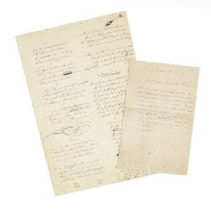 Manoscritti a inchiostro bruno. Quattro bifoli, scritte 16 pagine. Alcune gore rendono a volte difficoltosa la lettura del testo, con qualche perdita. Conservate 6 buste viaggiate (non riferibili alle lettere), con l'indirizzo di Teresina a Parigi. Dimensione bifoli: 135x210 mm e 210x265 mm. SI AGGIUNGE: Id.: Raccolta di carte di lavoro autografe da studiare. (5)I DOCUMENTO: Le lettere riguardano argomenti privati, il matrimonio, le opere I Promessi Sposi e I Lituani. Vengono citati Ricordi e Ghislanzoni e non mancano espressioni in dialetto lombardo. Gennaio 1874, da Milano (con qualche perdita di testo): [...] Rapporto ai Promessi Sposi io avrei piacere che si combinasse [...] E i cori, come sono? Quale ne è il numero? E l'orchestra è numerosa? Sappimi dire il numero dei violini primi, 2di, viole etc. E qual calcolo si può fare sul direttore d'orchestra? Ha reale abilità? [...] Io continuo a lavorare e oggi comincio l'istrumentazione dell'ultimo atto. Le parti dei cori dei primi atti sono quasi tutte stampate, e così pure è quasi ultimata la riduzione per piano e canto per le prove [...] Gioia mia, che dirai quando ti annuncio: sto alla prova generale. Rapporto alla donna prevedo che sarà la Fricci la quale in ogni modo ha voce per l'ambiente della Scala [...] Non trovano l'artista per il Menestrello che deve cantare la Ballata: Brunello mi consiglia di prendere la Durand [...] Ricordi mi ha mostrato la tua lettera [...] Ora sta macchinando per la messa in scena [...] e se ne preoccupa con molto interesse [...] Anche il M.o Dominicali [...] ritiene il successo sicuro. Ma non disi gatt se no l'è nel sacc [...] - Febbraio 1874, da Milano: [...] Del resto io desidero sposarti nell'epoca da noi stabilita, ma ch'io venga a Parigi ad effettuare la nostra unione, è improbabile [...] Non posso recarmi a Parigi per più motivi: 1° bisogna che veda l'esito dei Lituani 2° poco pratico della lingua e della città [...]. - Aprile 1874, da Lecco: [...] è da ieri che mi trovo qua presso Ghislanzoni allo scopo di praticare alcune accomodature al libretto dei Lituani. Credo che lo zio t'avrà diggià scritto relativamente all'esito dell'ultima recita che fu brillantissimo [...] sortii anch'io e appena mi videro ebbi un'ovazione [...] Vo vedere adesso di innestarvi 2 o 3 pezzi vivaci per togliere un po' di pesantezza, accorciare in molti punti e mettervi qualche ballabile [...] Vorrei prima che ci maritassimo aver finito queste modificazioni dei Lituani [...] premendomi tanto a me quanto a Ricordi che l'opera fosse riprodotta al più presto e stampata [...]. - Aprile 1874, da Milano: [...] noi non possiamo essere che felici. Ma per una fatalità c'è l'arte di mezzo e c'è la carriera d'ambedue [...] L'affare del Cairo per quanto sento da Corrado è quasi combinabile per te; per me non se ne fa nulla [...] Potendo praticare le modificazioni ai Lituani alle quali m'accingo, Ricordi desidererebbe riprodurre quest'opera a Bologna, stagione d'autunno in ottobre [...] gli arbitri, allorché saremo uniti, dobbiamo esser noi – combinare le cose in modo che la carriera d'entrambi non sia compromessa [...].