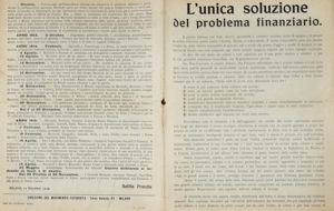 Marinetti Filippo Tommaso, L'unica soluzione del problema finanziario. [Segue: Il Futurismo e la Guerra. Cronaca sintetica]. Milano: Direzione del Movimento Futurista, 11 dicembre 1915 [i.e. 1916?].