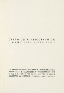 D'Albisola Tullio, La ceramica futurista. Manifesto dell'aeroceramica. S.l. [i.e. Albisola Marina]: s.e., 1939.