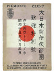 In-folio (mm 450x353). Esemplare profusamente illustrato, con foto in bianco e nero e tavole a colori di Sironi, Nizzoli, Ridenti, Micaelles e molti altri. in ottimo stato di conservazione. Legatura editoriale originale in mezza tela, con piatti e dorso in cartonato illustrato. Minimi segni di usura. SI AGGIUNGE: Numero unico dedicato alla missione giapponese in visita al Piemonte. 3 giugno 1940 XVIII E.F.. (2)I OPERA: Rara edizione speciale della 'Rivista illustrata del Popolo d'Italia', pubblicata in occasione della fondazione dell'Impero Italiano (maggio 1936). Probabilmente il più esaustivo testo di propaganda dell'era fascista, graficamente e artisticamente all'avanguardia, con tavole e incisioni artistiche su cartoncino speciale dei più famosi artisti dell'epoca: Sironi, Nizzoli, Buffoni, Micaelles, con la cura artistica di Luigi Poli. Le foto e i fotogrammi sono stati curati dall' Istituto Nazionale Luce.