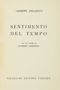 Ungaretti Giuseppe, Sentimento del tempo. Con un saggio di Alfrego Gargiulo. Firenze: Vallecchi, 1933.