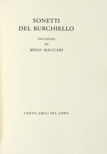 Burchiello, Sonetti [...]. Incisioni di Mino Maccari. [Firenze]: Cento Amici del Libro, [1962]. (Al colophon:) Verona: Officina Bodoni, 1962.
