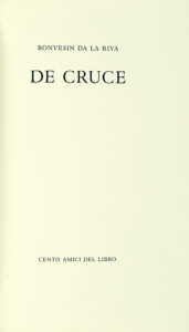 Bonvesin de la Riva, De Cruce. [Milano]: Cento Amici del Libro, [1982]. (Al colophon:) Verona: Officina Bodoni, 1982.