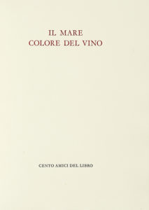 Sciascia Leonardo, Il mare colore del vino. [Milano]: Cento Amici del Libro, [1984]. (Al colophon:) Verona: Officina Bodoni, 1984.