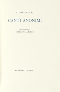 Ré bora Clemente, Canti anonimi. Milano: Cento Amici del Libro, 2000.