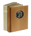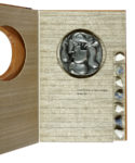 In-4° (mm 300x200). Carte [13] in cartoncino-legno con, al margine esterno, 7 schegge di marmo bianco di Carrara e granito blu di Bahia. Scultura di Pietro Cascella in metallo bianco, fusa a cera persa applicata al centro del libro. Legatura a brachetta con titoli al dorso e piatti in ciliegio realizzati da Francois Bourdon; un foro circolare a quello anteriore per collocare la scultura. Custodia in cartoncino-legno profilata in pelle. Uno dei 100 esemplari ad personam, su una tiratura complessiva di 130 copie, firmati dall'Autore e dalla moglie di Cascella, venuto a mancare durante la realizzazione dell'edizione. (1)Parole figurate 170-171.