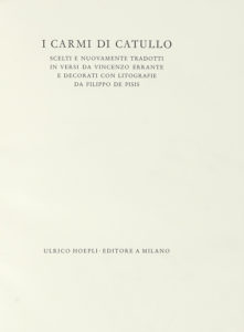 Catullus Gaius Valerius, I Carmi [...] scelti e nuovamente tradotti in versi da Vincenzo Errante e decorati con litografie da Filippo De Pisis. Milano: Ulrico Hoepli, [1945]. (Al colophon:) Verona: Officina Bodoni, 1945.